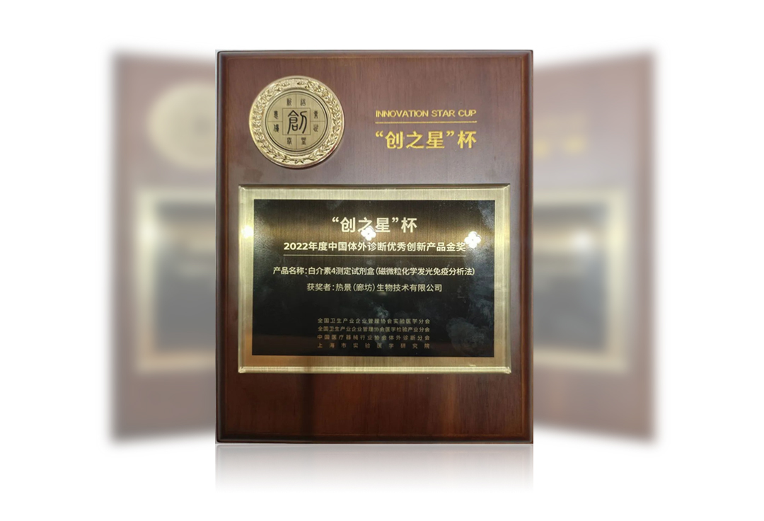 在5月27日“創(chuàng)之聲”第八屆中國實驗醫(yī)學(xué)大會現(xiàn)場,熱景生物旗下熱景(廊坊)生物技術(shù)有限公司生產(chǎn)的專有特色細(xì)胞因子系列產(chǎn)品,榮獲2022年度“創(chuàng)之星”杯中國體外診斷優(yōu)秀創(chuàng)新產(chǎn)品金獎。