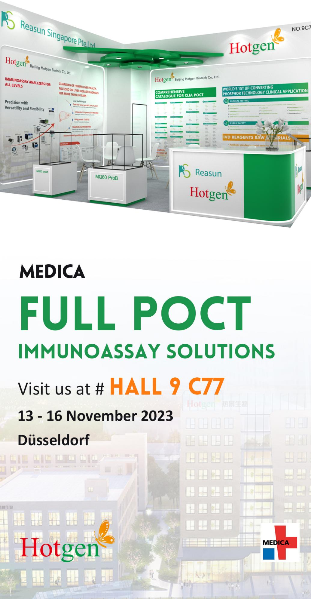 備受矚目的第55屆德國杜塞爾多夫國際醫(yī)院及醫(yī)療設(shè)備展覽會(MEDICA 2023)將于2023年11月13日-16日在德國杜塞爾多夫展覽中心舉辦,熱景生物展位號Hall9 C77。作為一家以“發(fā)展生物科技,造福人類健康”為使命的生物高新技術(shù)企業(yè),熱景生物一直致力于為世界各地的醫(yī)療機(jī)構(gòu)提供精準(zhǔn)、便捷的臨床診斷和體檢解決方案。本次展會將展示我們近年來在IVD領(lǐng)域研發(fā)的最新成果。