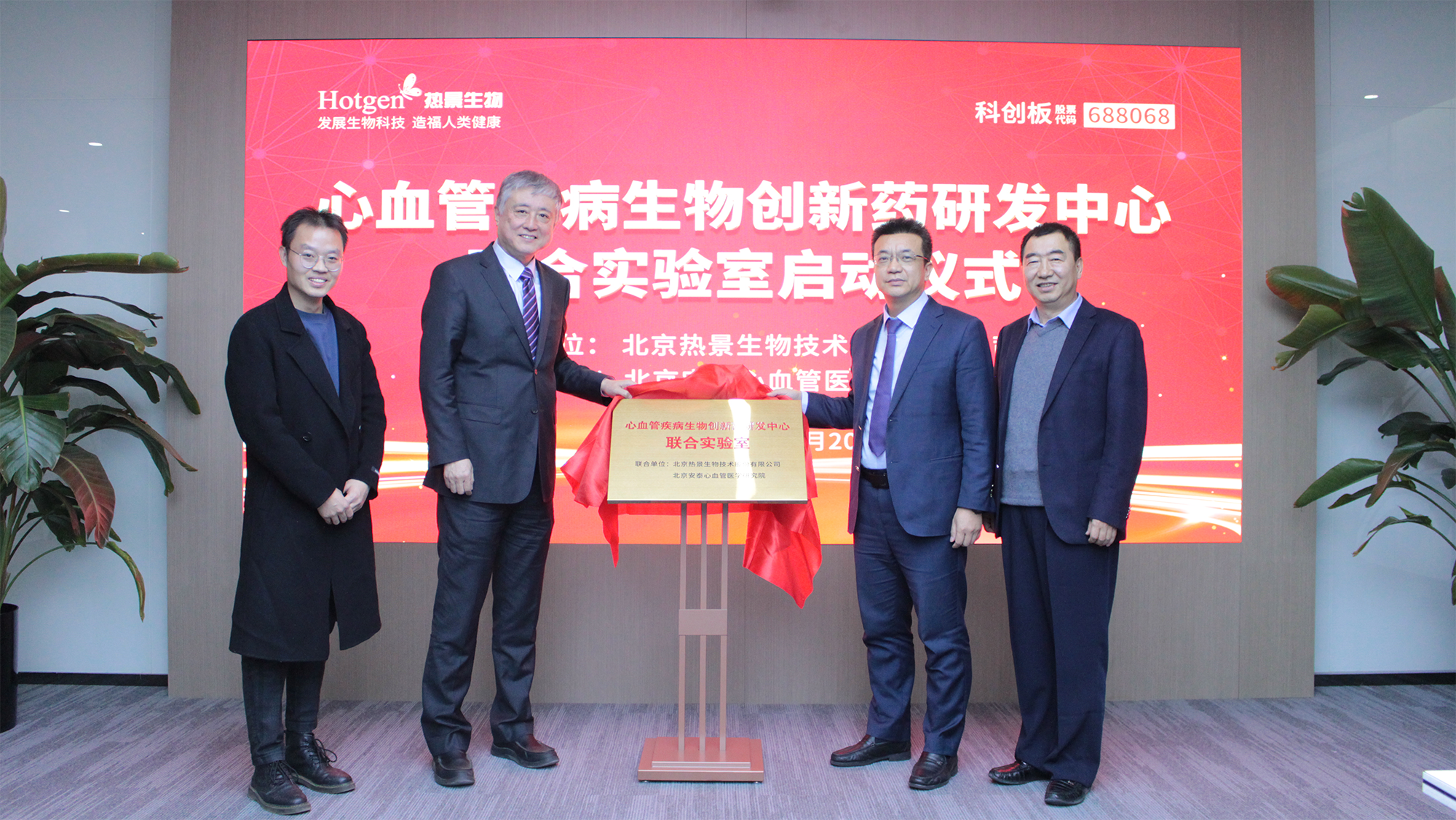 2023年11月20日,北京熱景生物技術(shù)股份有限公司董事長兼總裁林長青先生、北京安泰心血管醫(yī)學(xué)研究院院長杜杰教授、北京舜景生物醫(yī)藥技術(shù)有限公司總經(jīng)理孫志偉教授共同為“心血管疾病生物創(chuàng)新藥研發(fā)中心聯(lián)合實(shí)驗(yàn)室”揭牌,這是一場(chǎng)具有里程碑意義的啟動(dòng)儀式,標(biāo)志著熱景生物及其關(guān)聯(lián)公司在安泰心血管研究院的加持下,聚焦心血管疾病從診斷到治療的研發(fā)進(jìn)入快速發(fā)展階段。