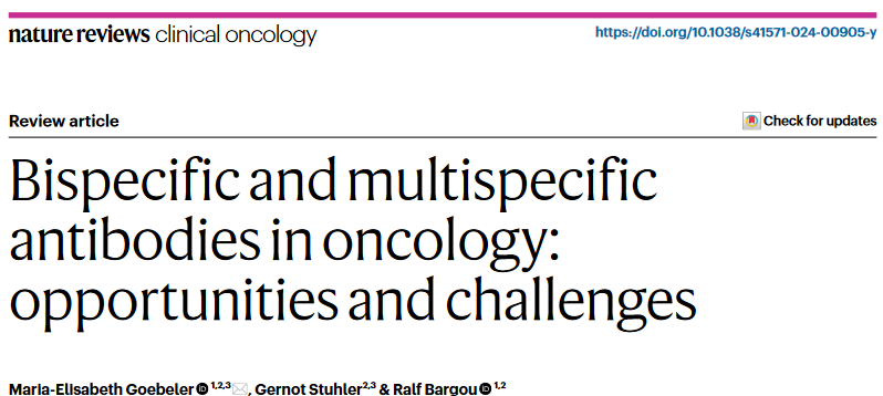 文章轉(zhuǎn)自:BioMed科技,點擊訪問微信鏈接:IF:78.8!Nature系列綜述: 面向腫瘤的雙特異性和多特異性抗體—機遇與挑戰(zhàn)