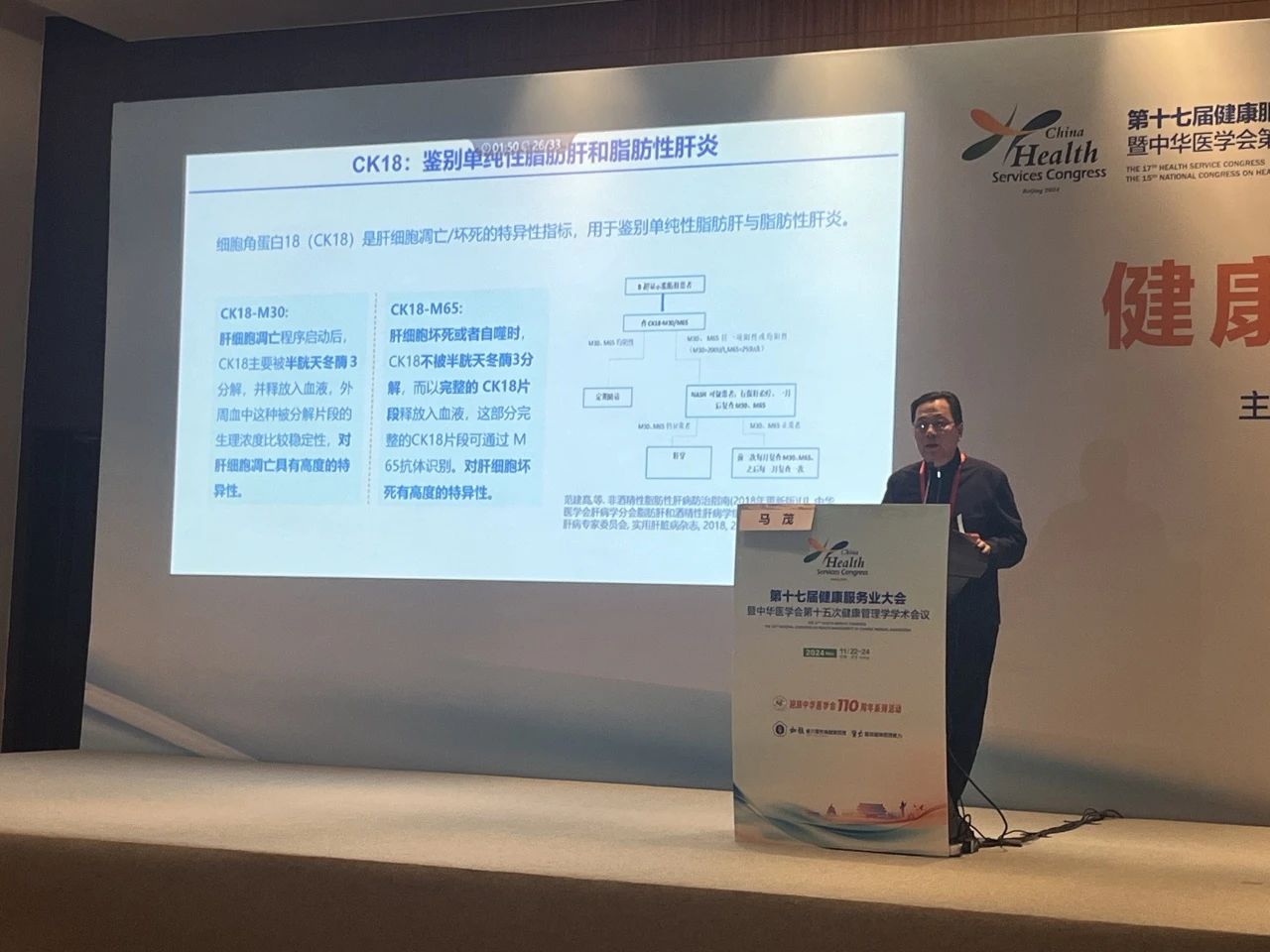 北京航天總醫(yī)院體檢中心張晗教授在專題講座中指出,細胞角蛋白18(CK18)片段在代謝相關(guān)脂肪性肝病MAFLD的早期篩查、疾病進展監(jiān)測和治療效果評估中具有重要價值。全球約有16.6億MAFLD患者,中國城市人口中MAFLD患病率為28.77%。CK18-M30和M65片段與肝細胞凋亡和壞死相關(guān),其水平隨疾病嚴重程度升高。CK18在診斷MASH(代謝相關(guān)脂肪性肝炎)方面的性能優(yōu)于傳統(tǒng)肝酶指標,是目前最認可的MASH輔助診斷指標。張晗教授強調(diào),多學(xué)科協(xié)作管理是MAFLD治療的關(guān)鍵,通過綜合管理和個性化治療,可以有效改善患者的預(yù)后。