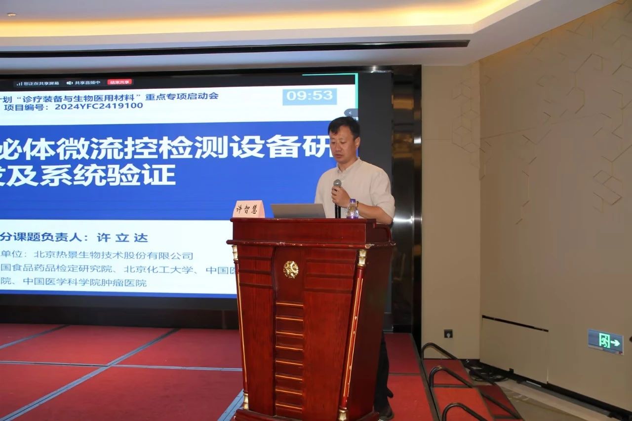5月16日,國家重點(diǎn)研發(fā)計(jì)劃“診療裝備與生物醫(yī)用材料”重點(diǎn)專項(xiàng) “疾病特異性外泌體檢測(cè)技術(shù)研究及樣機(jī)研制”項(xiàng)目啟動(dòng)會(huì)在廣州召開。項(xiàng)目由南方醫(yī)科大學(xué)南方醫(yī)院牽頭、聯(lián)合中國醫(yī)學(xué)科學(xué)院北京協(xié)和醫(yī)院、中國醫(yī)學(xué)科學(xué)院腫瘤醫(yī)院、北京化工大學(xué)、北京熱景生物技術(shù)股份有限公司等單位共同承擔(dān)。項(xiàng)目及各子課題負(fù)責(zé)人對(duì)課題實(shí)施方案及近期進(jìn)展進(jìn)行匯報(bào),認(rèn)真聽取指導(dǎo)專家的意見和建議。