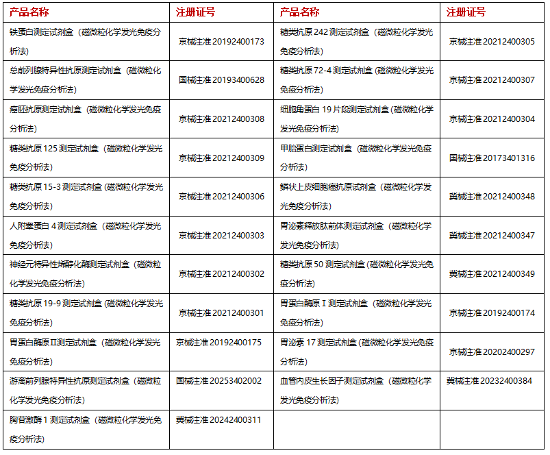 熱景生物磁微?;瘜W(xué)發(fā)光平臺已全面布局腫瘤標(biāo)志物檢測,菜單含有超20項腫瘤標(biāo)志物,涵蓋肝癌、肺癌、乳腺、卵巢、前列腺、消化系統(tǒng)等常見惡性腫瘤,為我國腫瘤防治貢獻(xiàn)自身力量。