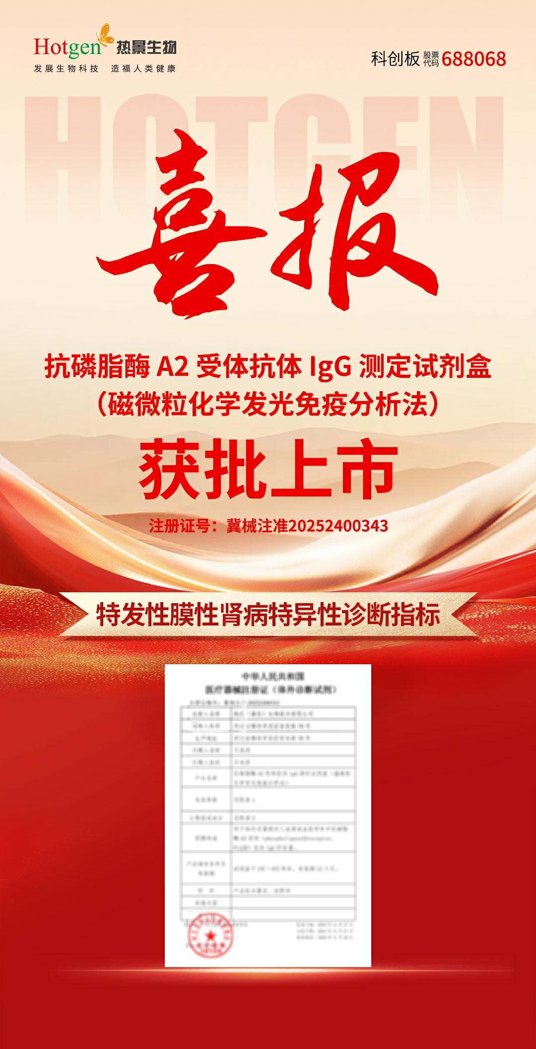 熱景生物始終以“解決臨床痛點(diǎn),精準(zhǔn)賦能臨床”為核心方向,此次抗磷脂酶 A2 受體抗體 IgG 測(cè)定試劑盒的獲批,進(jìn)一步完善了公司在腎病精準(zhǔn)診斷、慢病管理賽道的產(chǎn)品矩陣,讓更多患者享受到 “精準(zhǔn)、便捷、經(jīng)濟(jì)” 的診斷服務(wù)。未來(lái),熱景生物將繼續(xù)以技術(shù)創(chuàng)新為引擎,在生物醫(yī)藥領(lǐng)域持續(xù)突破,為提升我國(guó)臨床診斷水平、守護(hù)國(guó)民健康貢獻(xiàn)更多力量!