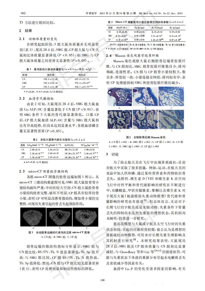 Improvement effect of oral bovine collagen peptide on the microstructure of rat femur under simulate