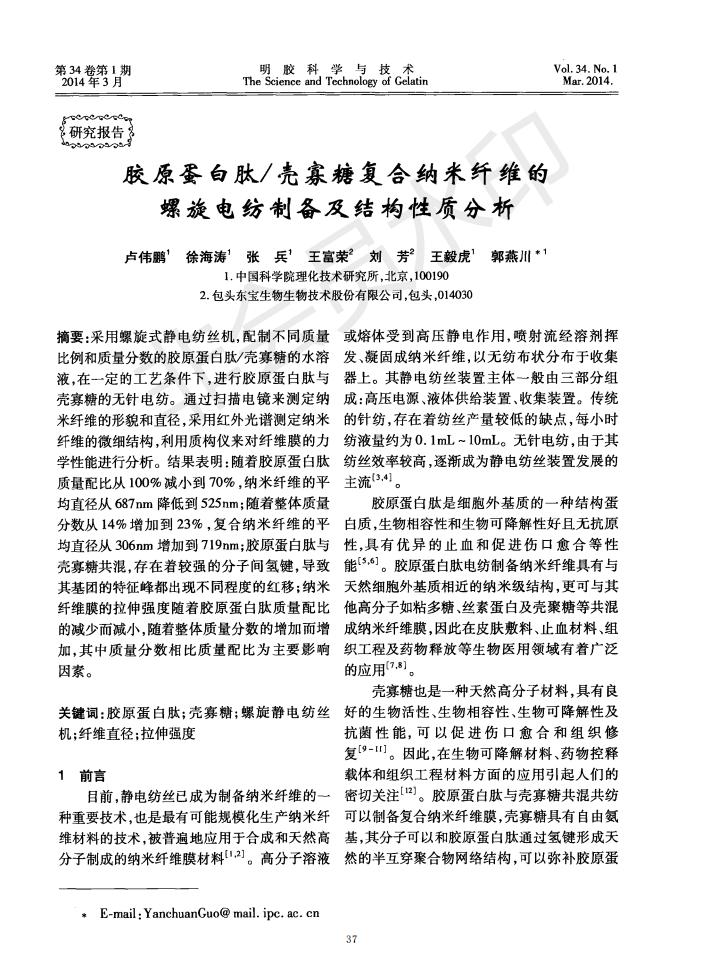 膠原蛋白肽/殼寡糖復(fù)合納米纖維的螺旋電紡制備及結(jié)構(gòu)性質(zhì)分析