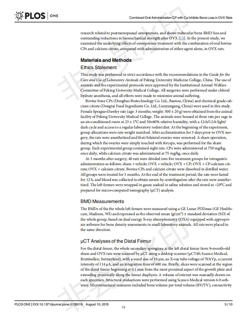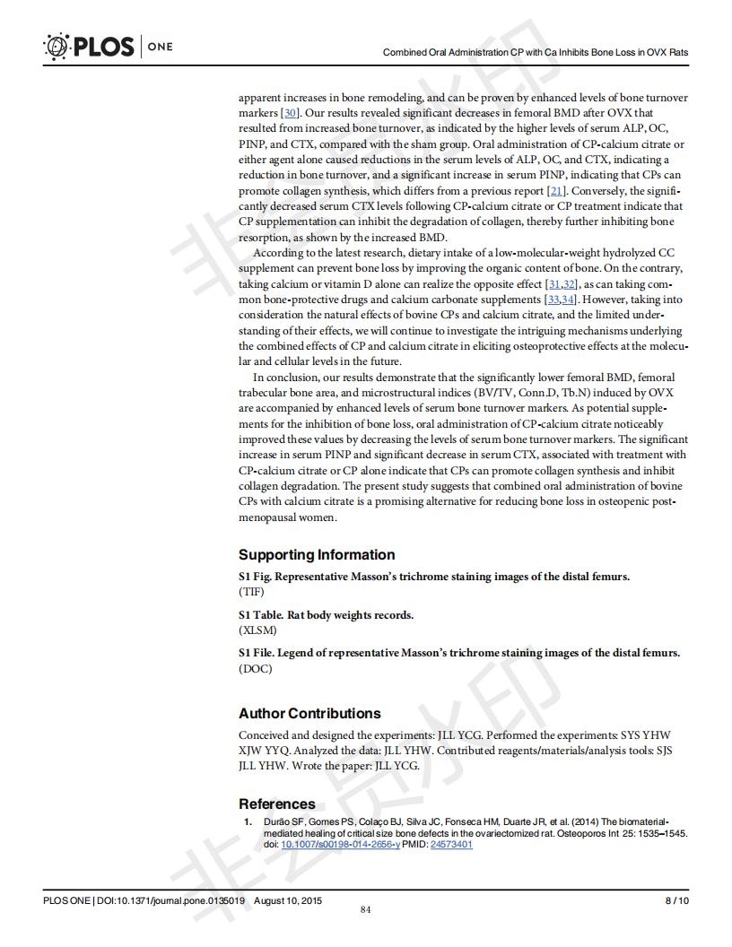 口服骨膠原肽于檸檬酸鈣抑制去卵巢大鼠骨丟失