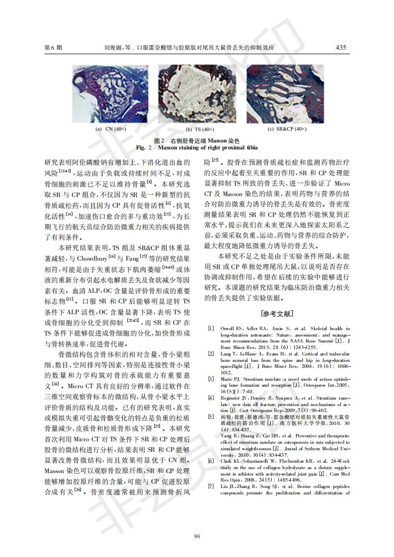 口服雷奈酸鍶與膠原肽對尾吊大鼠骨丟失的抑制效應