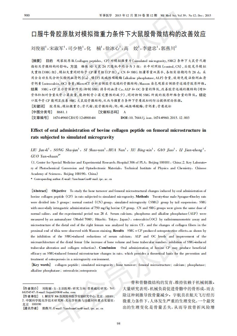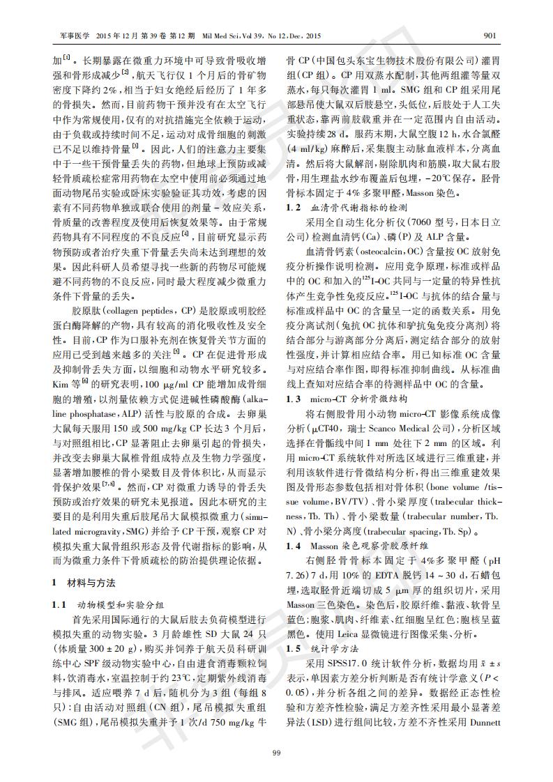 口服牛骨膠原肽對(duì)模擬微重力條件下大鼠股骨微結(jié)構(gòu)的改善效應(yīng)
